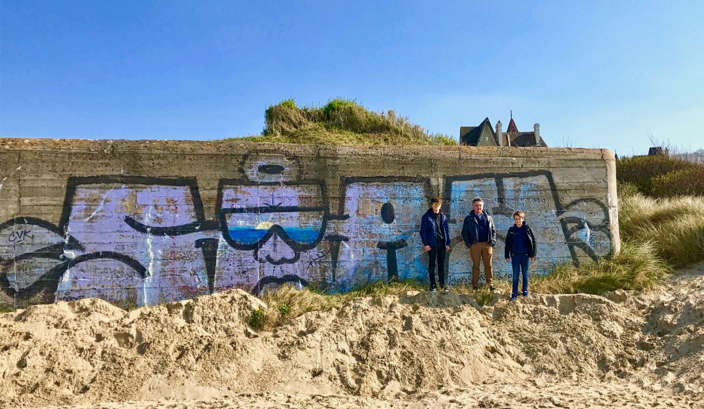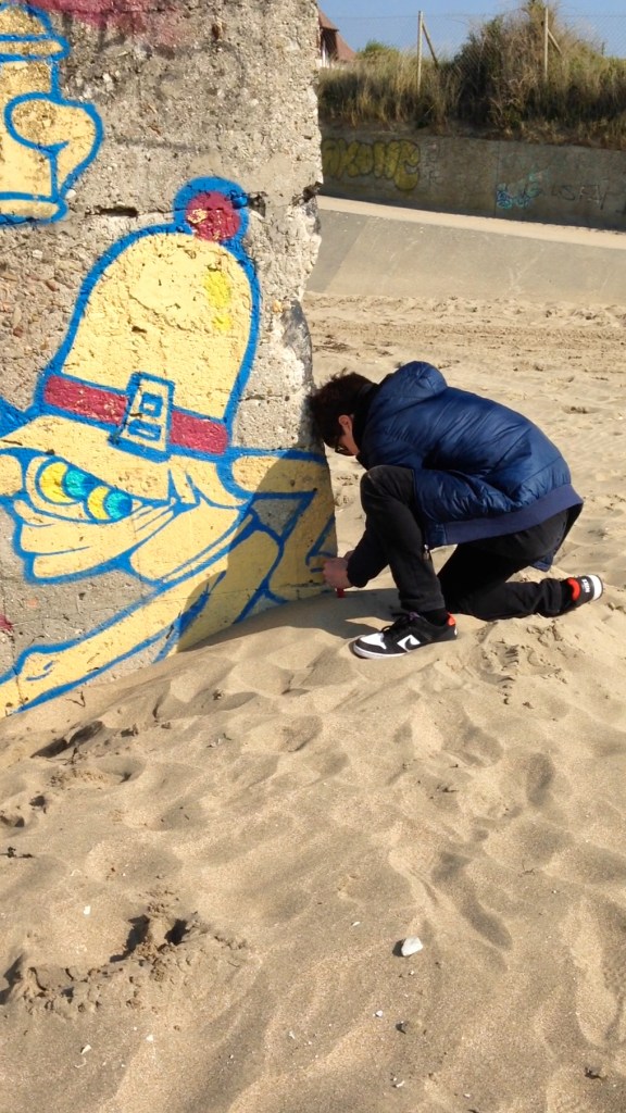 And that’s how I came to be standing high up the sand-dunes, bolstered by tufts of coarse sea-grass, next to a vast graffitied gun emplacement, shooting our children. In slo-mo. With my phone.